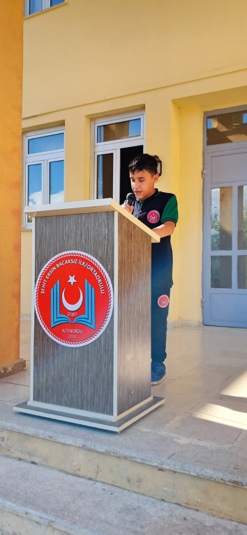 Kutlama programı kapsamında, okul bahçesinde bir tören düzenlendi. İlk olarak okul müdürümüz Ömer Medin tarafından yapılan açılış konuşmalarıyla başlayan etkinlik, öğrencilerimizin kürsüye çıkarak, milli değerlerimizi ve eğitim öğretim sürecini anlattıkları konuşmalarla devam etti. Ardından öğrencilerimiz tarafından okunan şiirler ile etkinliğimiz son buldu.